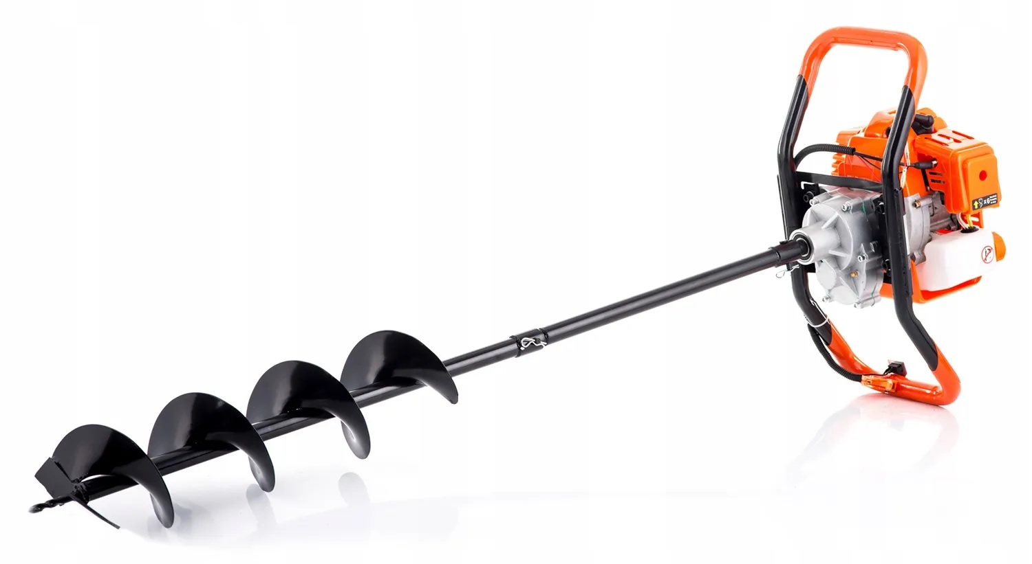W zestawie : wiertnica, świder średnica 20 cm długość 50 cm ( dostępna również średnica świdra 30 cm do piasku i lekkiej ziemi), przedłużka świdra 70 cm, zestaw narzędzi.